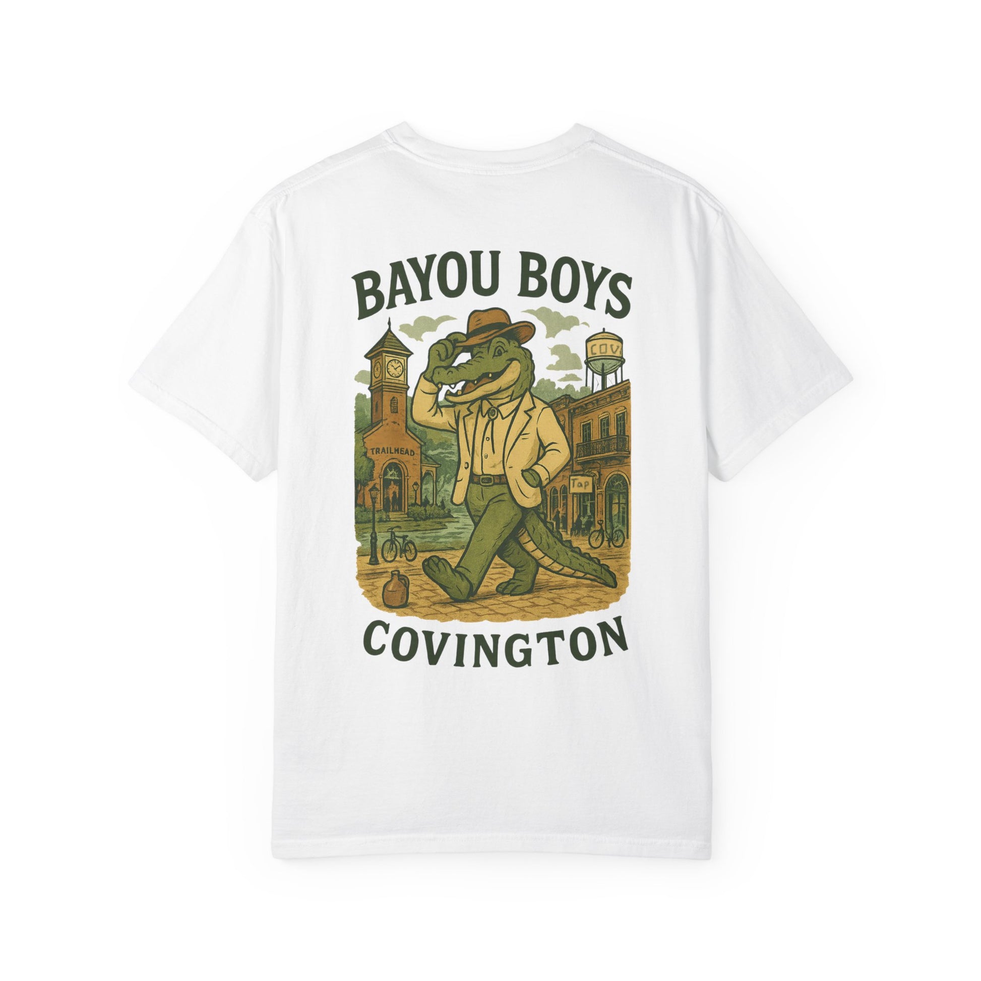 Experience comfort and style with this relaxed-fit T-shirt, perfect for everyday wear, sharing landmarks and traditions within Covington, Louisiana. From the brown jug representing the love for high school football, to the display of the old architecture. This shirt shows all of Covington's beauty. Its garment-dyed fabric offers a soft texture and rich color, adding a unique touch to your wardrobe. Whether you're lounging at home or out with friends, this T-shirt can complement any casual outfit. Ideal for those who appreciate quality and style, it’s a great choice for all genders. Perfect for celebrating holidays, casual get-togethers, or just expressing your laid-back vibe, all while representing the beautiful small town of Covington, this T-shirt is a versatile addition to any closet.