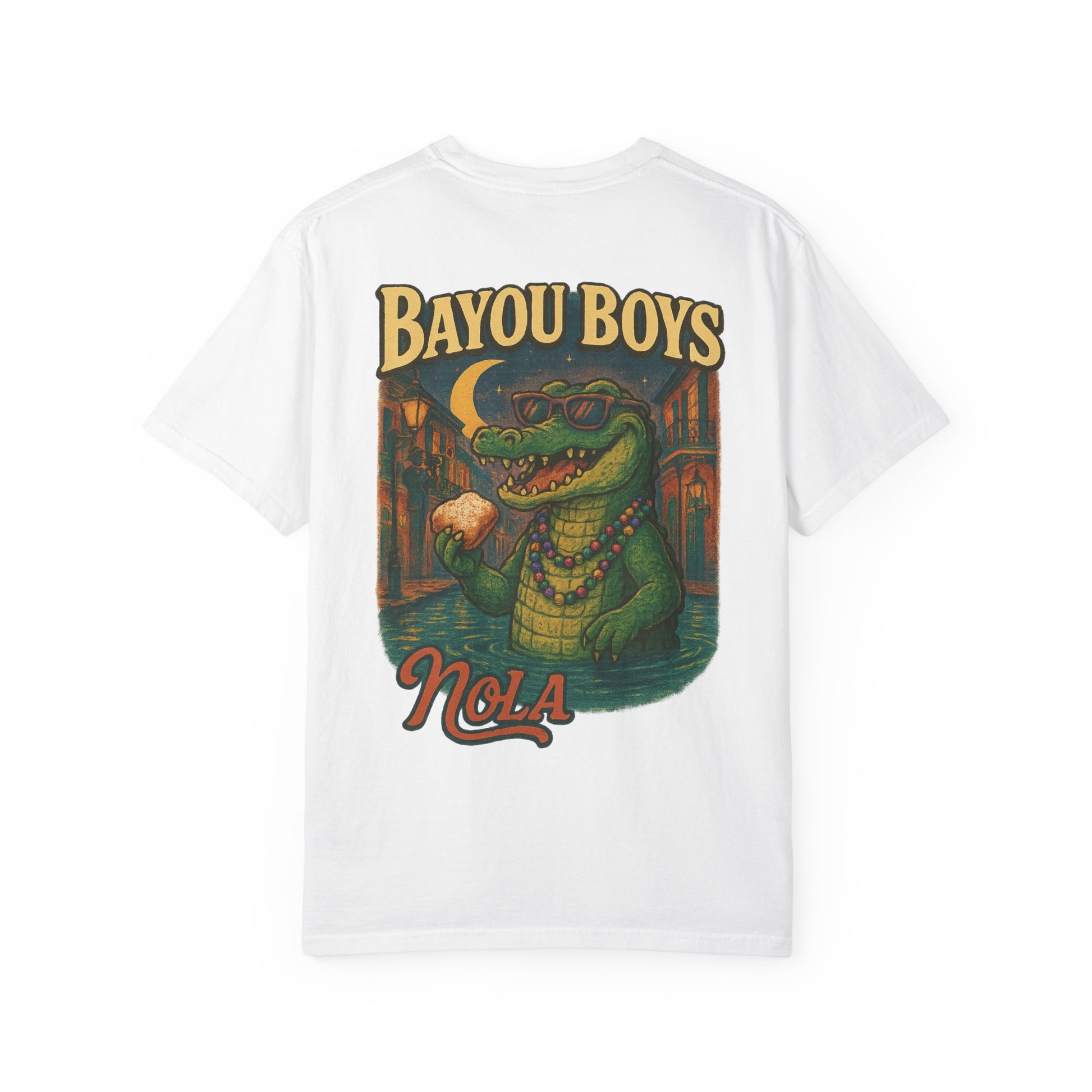 The Hometown collection presents Bayou Boys x Nola "French Quarter" This shirt is designed to capture the culture and style of the French Quarter in New Orleans! From the beignet in hand to the jazz in the background this shirt is a story and a culture that will show off the uniqueness of a city that is full of tradition.